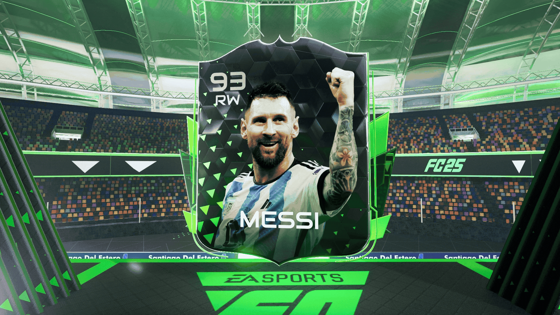 For this project, I began by studying a variety of references, including card designs, stage layouts, and the overall stadium atmosphere, which helped me shape both the aesthetic direction and the mood I wanted to capture. Rather than focusing on producing a clean, game-like render, my intention was to create something that felt more cinematic and emotionally engaging. To achieve this, I built a sequence where players pass the ball around the field, gradually building anticipation before taking the final shot that transitions into the card reveal.